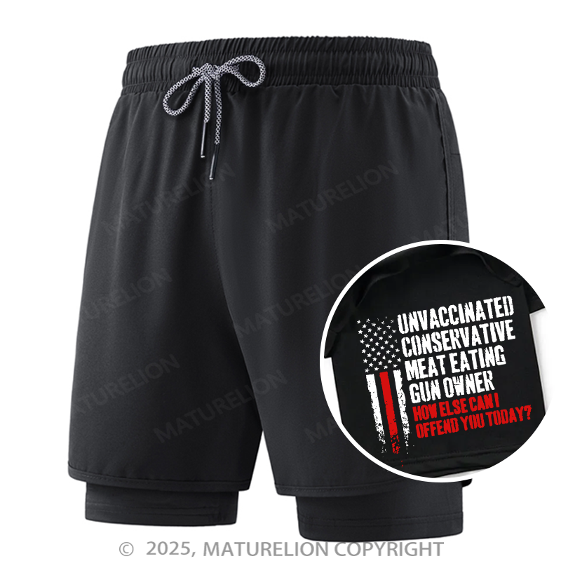 Maturelion Men's Short Unvaccinated Conservative Meat Eating Gun Owner Funny Offended Double Layer Short$29.98 USD -