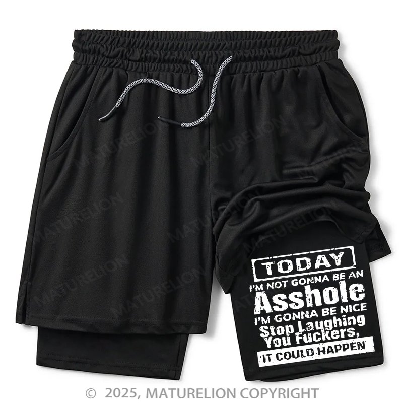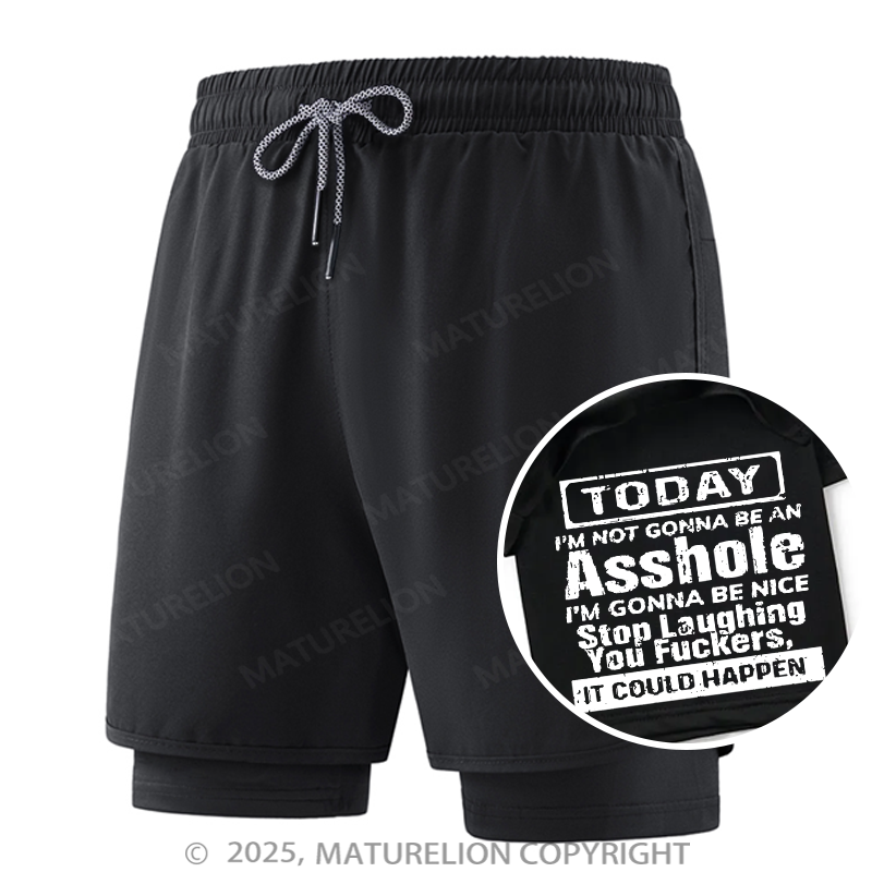 Maturelion Men's Short Today I'm Not Gonna Be An Asshole I'm Gonna Be Nice Stop Laughing You Fuckers It Could Happen Double Layer Short$29.98 USD -