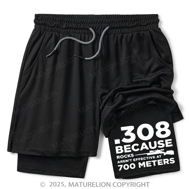 Maturelion Men's Short 308 Because Rocks Aren'T Effective At 700 Meters Double Layer Short$29.98 USD -