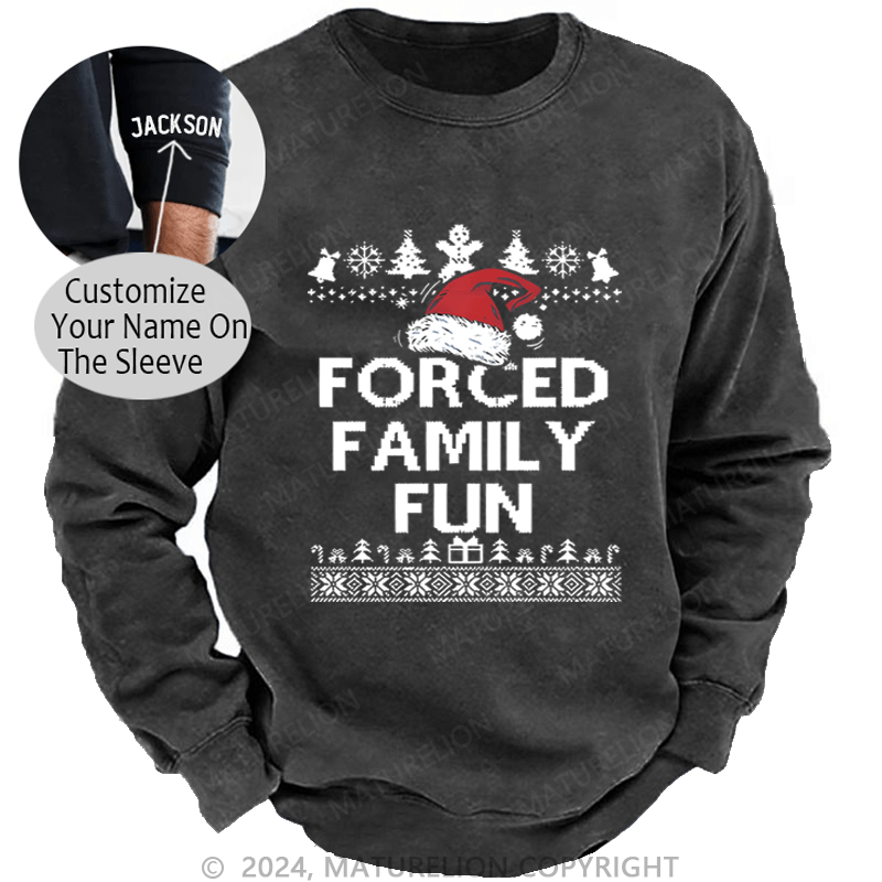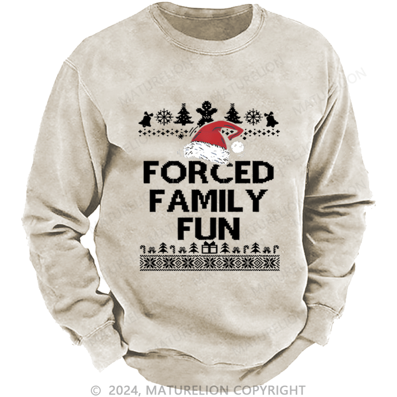 Maturelion Christmas Sweatshirt Forced Family Fun Custom Washed Sweatshirt$39.98 USD -