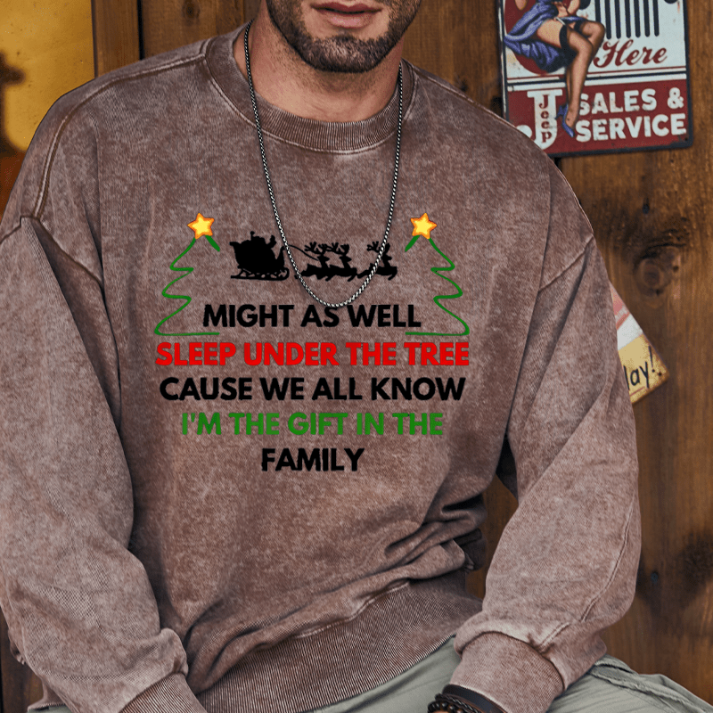 Maturelion Christmas Sweatshirt Might As Well Sleep Under The Tree Cause We All Know I’m The Gift In The Family Sweatshirt$39.98 USD -