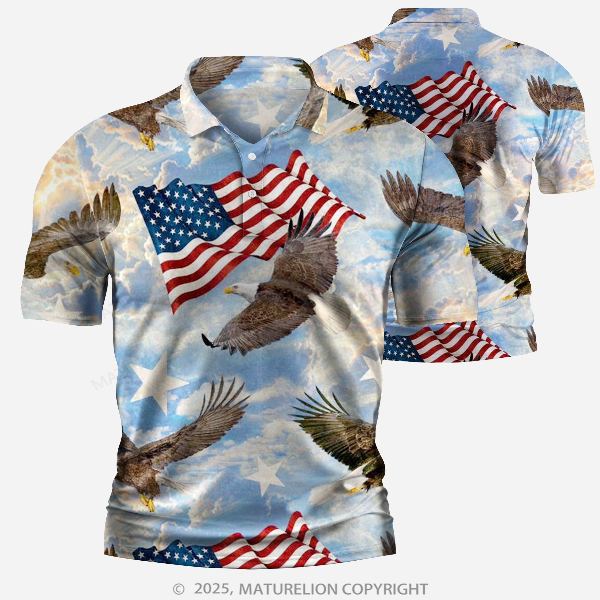 Maturelion Men's Polo Shirt 3D American Bald Eagle Printed Polo Shirt$32.99 USD -