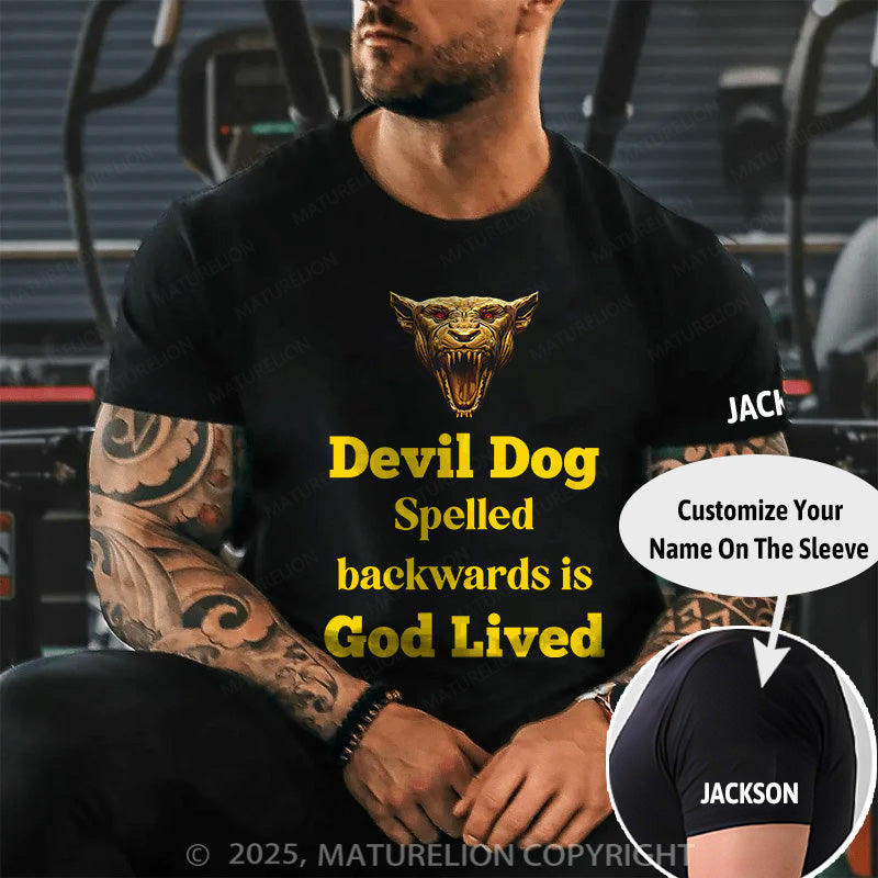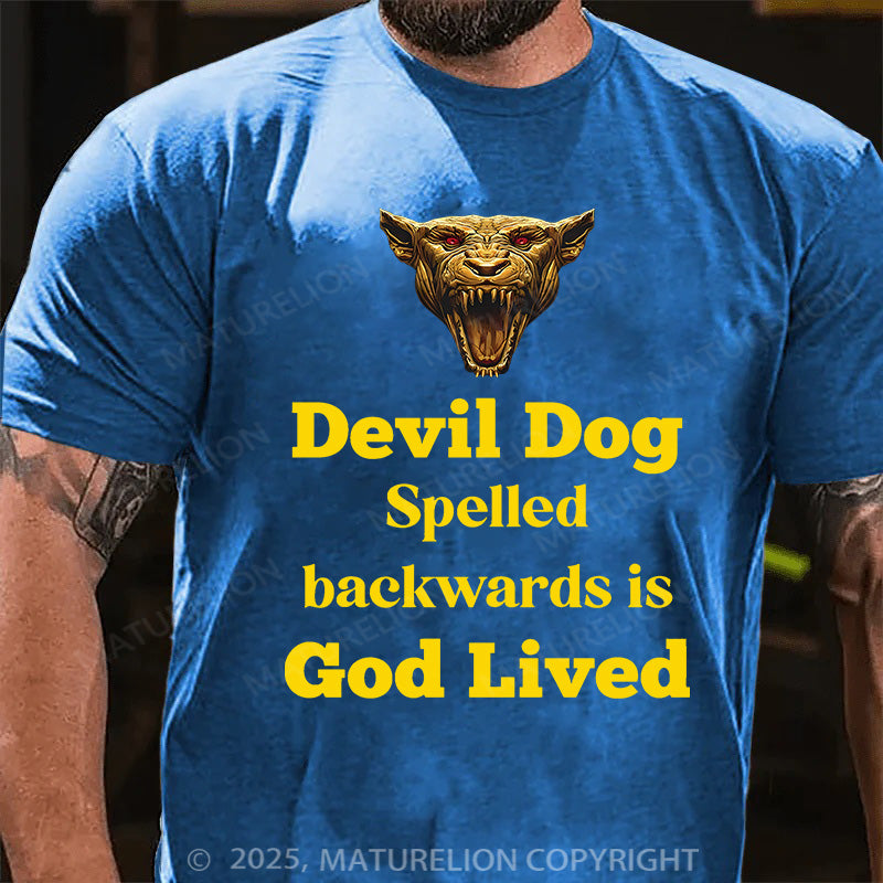 Maturelion Men's T-shirt Devil Dog Spelled backwards is God lived Cotton T-shirt