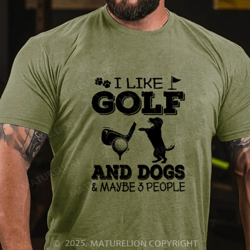 Maturelion Men's T-shirt I Like Golf And Dogs And Maybe 3 People Cotton T-shirt