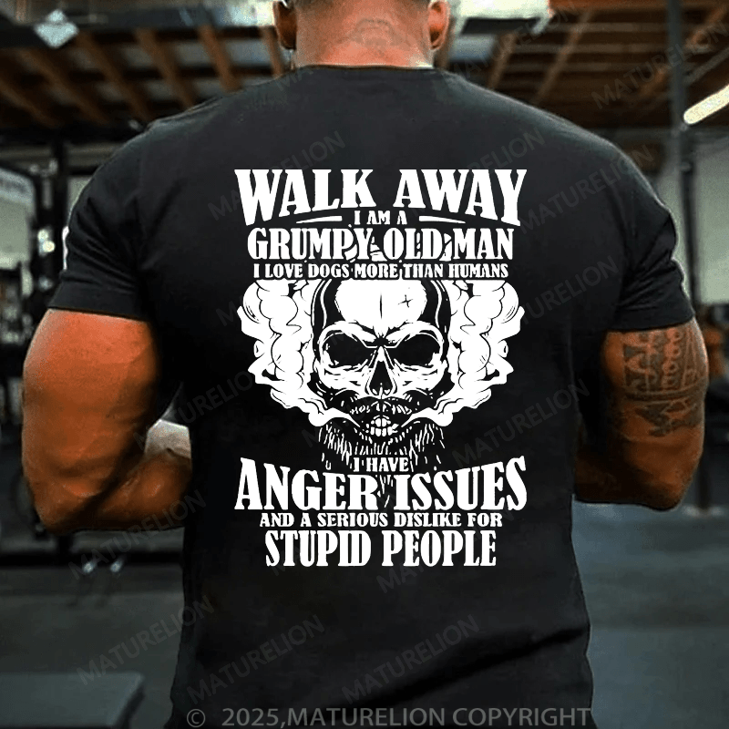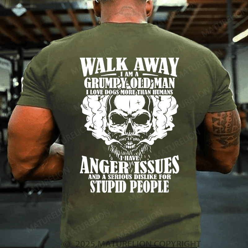Maturelion Men's T-Shirt Walk Away I Am A Grumpy Old Man I Love Dogs More Than Humans I Have Angervissues And A Serious Dislike For Stupid People T-Shirt