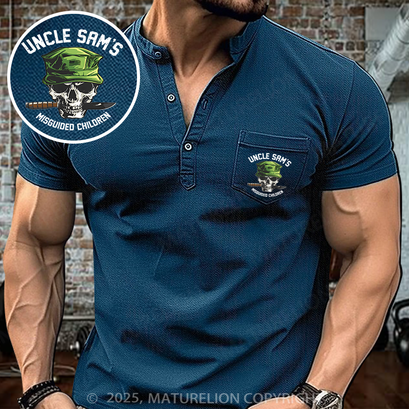 Maturelion Uncle Sam's Misguided Children Henley Shirt$26.99 USD $69.99 USD -