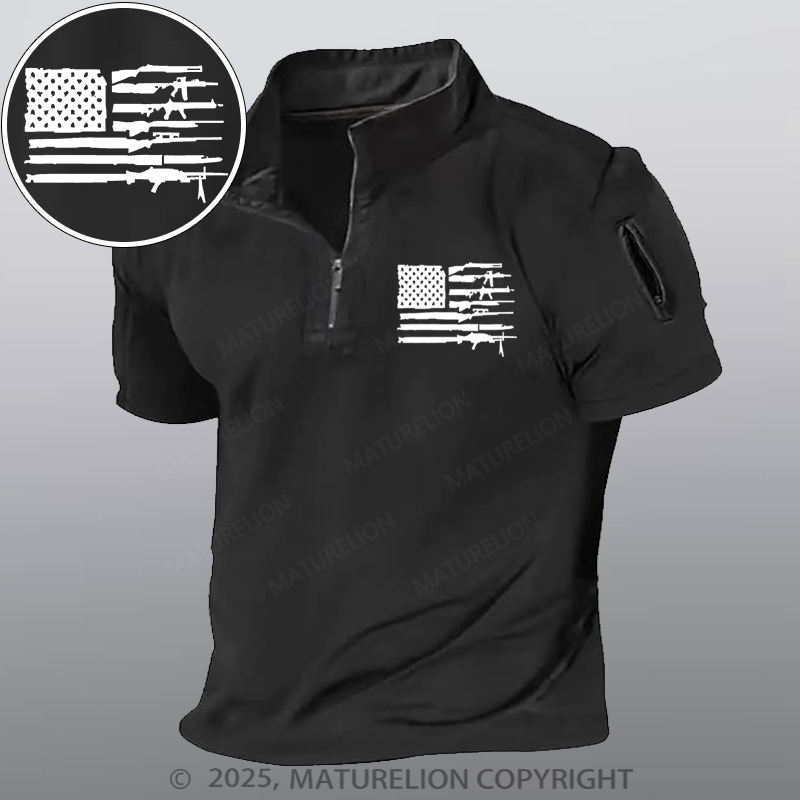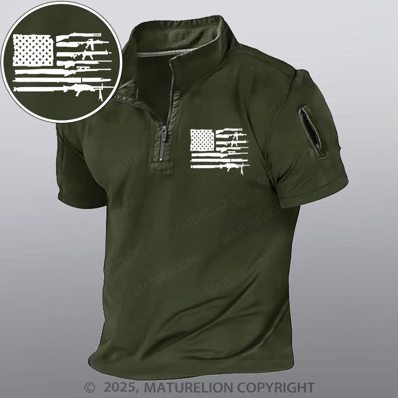 Maturelion Men's Henley Shirt American Gun Flag Henley Shirt$29.99 USD