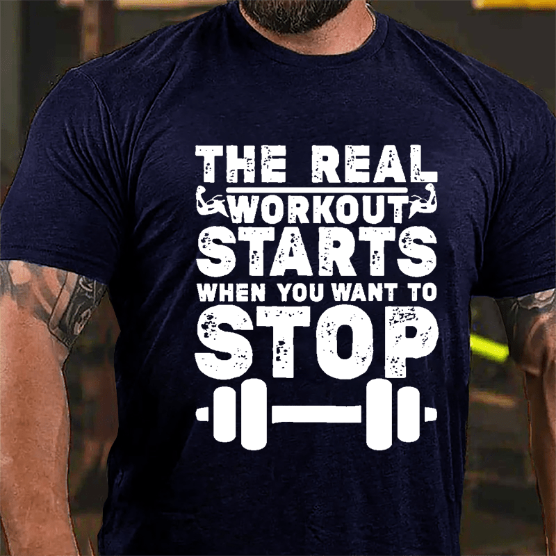 The Real Workout Starts When You Want To Stop Funny Workout Cotton T-shirt$22.99 USD -
