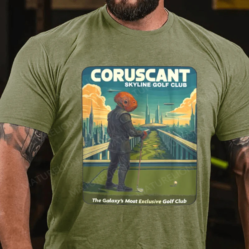Maturelion Men's T-Shirt Coruscant Skyline Golf Club Cotton T-Shirt