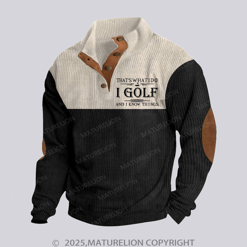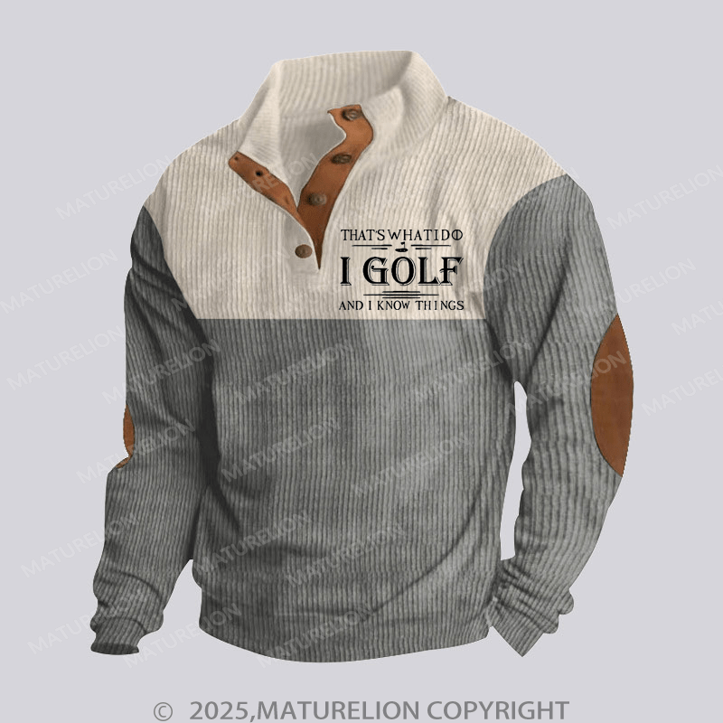Maturelion Men's Henley Shirt That's What I Do I Golf And I Know Things Funny Stand Collar Button Henley Shirt