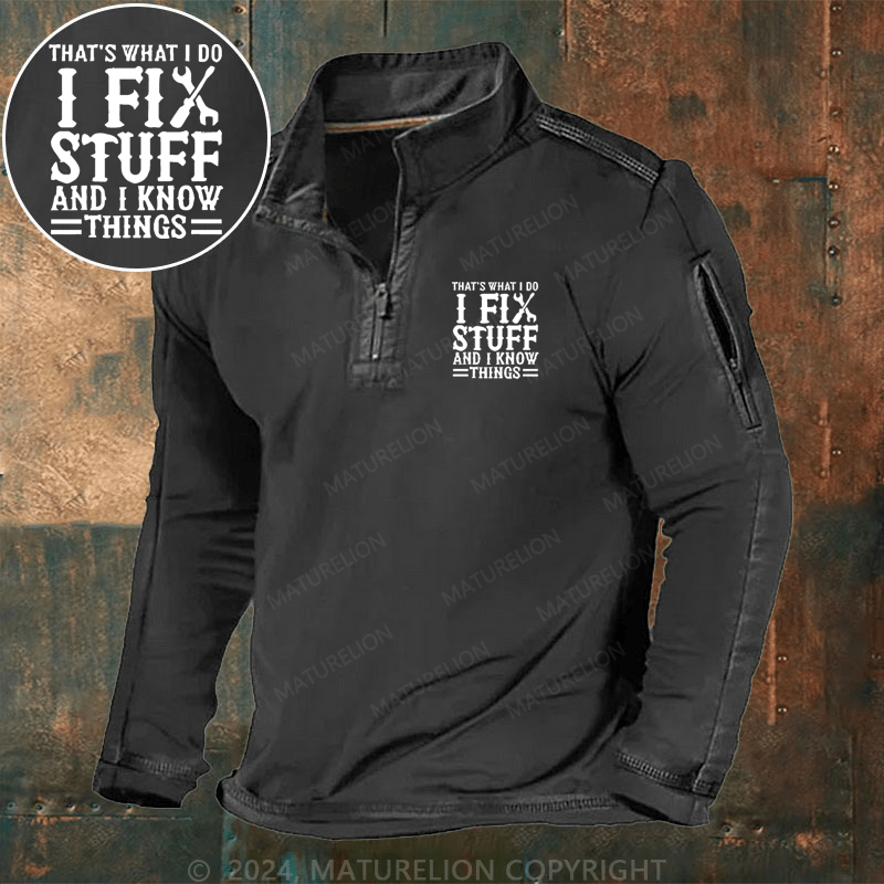 Maturelion Men's Sweatshirt That's What I Do I Fix Stuff And Know Things Funny Sweatshirt$39.98 USD -