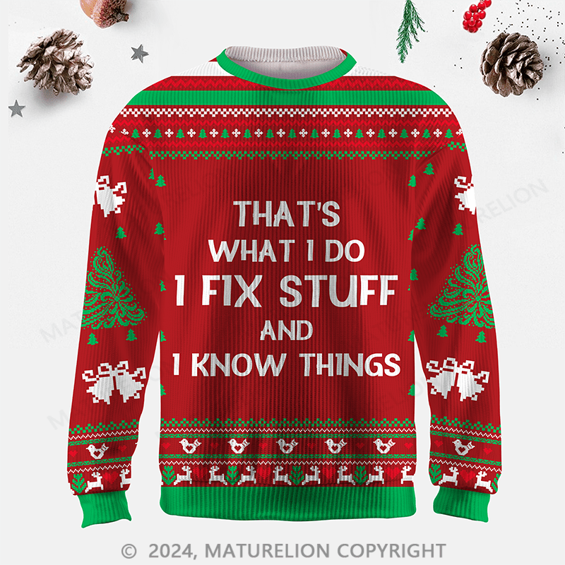 Maturelion That's What I Do I Fix Stuff And I Know Things Ugly Christmas Sweater$39.99 USD $69.99 USD -