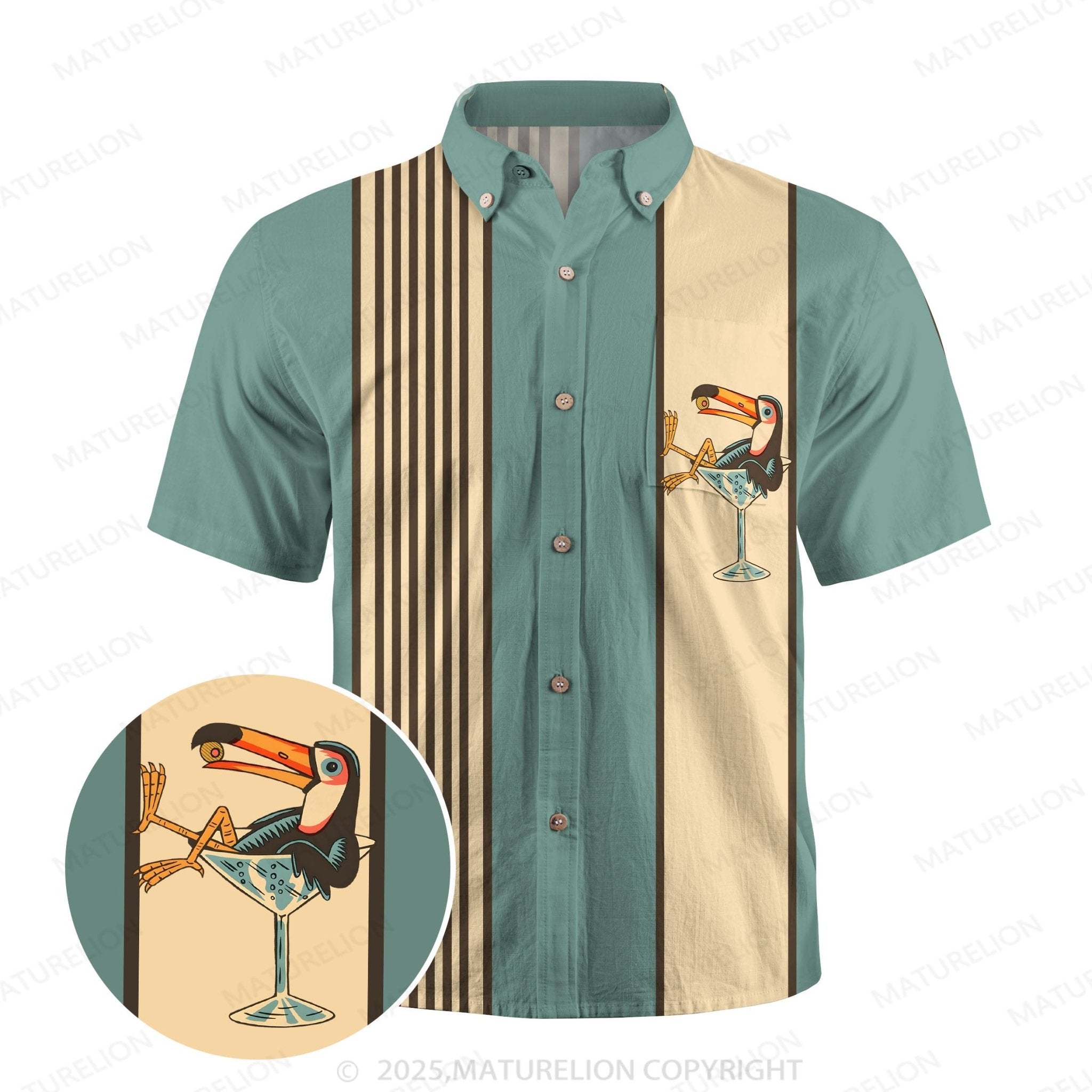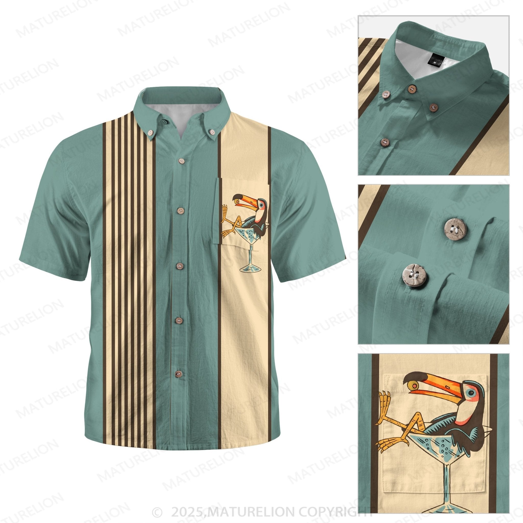 Maturelion Men's Aloha Shirts Vintage Toucan Funny Hawaiian Shirt$49.98 USD -