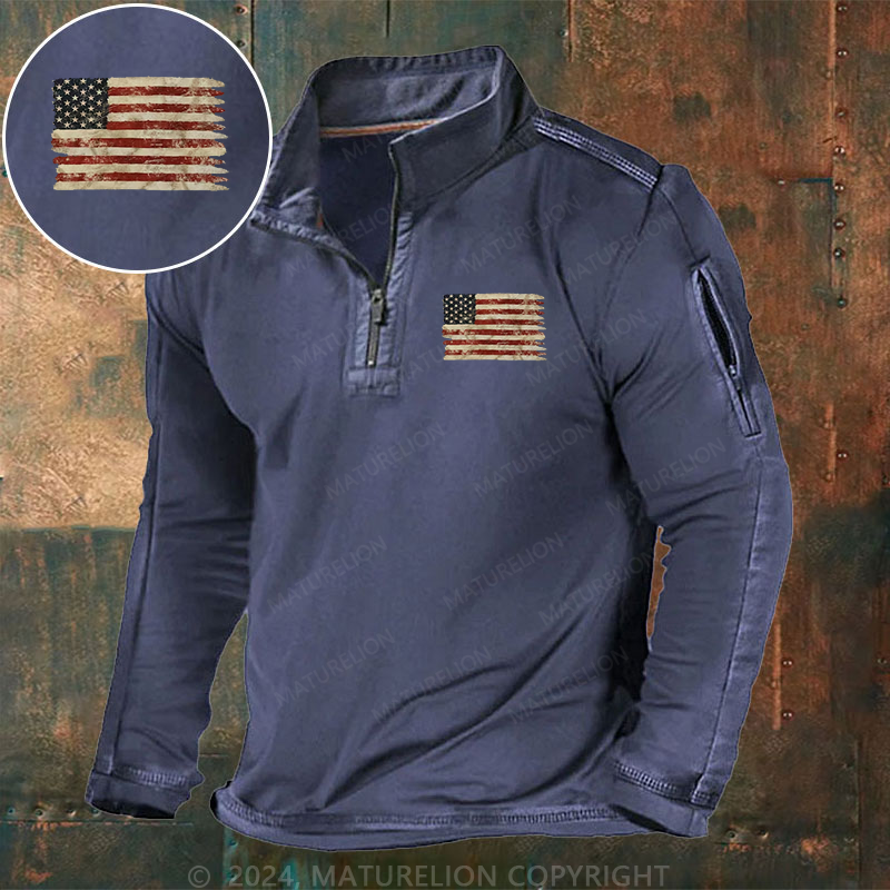Maturelion Men's Henley Shirt Tattered American Flag Henley Shirt