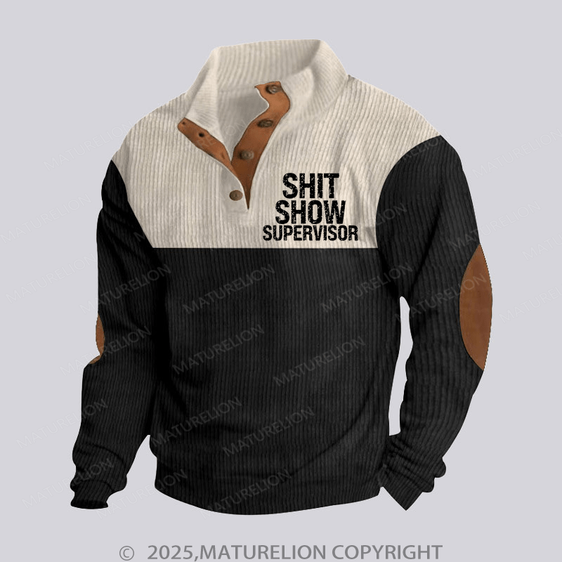 Maturelion Men's Henley Shirt Shit Show Supervisor Funny Stand Collar Button Henley Shirt