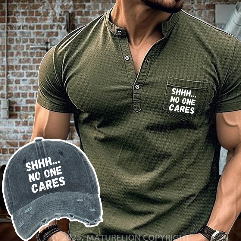 Maturelion Shhh...No One Cares Henley Shirt and Hat Set$42.48 USD $49.98 USD -