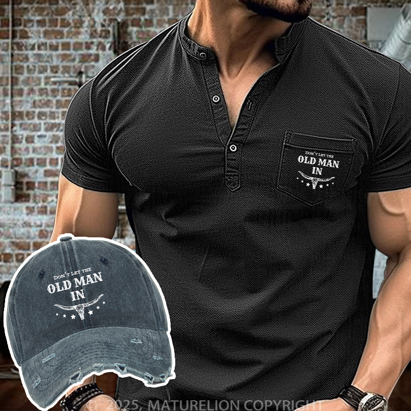 Maturelion R.I.P. Don't Let The Old Man In Henley Shirt and Hat Set$42.48 USD $49.98 USD -