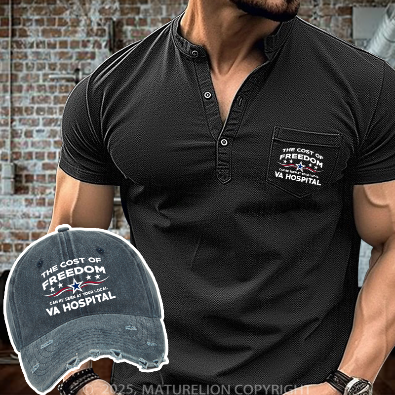 Maturelion The Cost Of Freedom Can Be Seen At Your Local VA Hospital Henley Shirt and Hat Set$42.48 USD $49.98 USD -