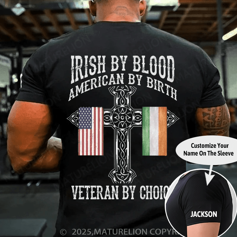 Maturelion St Patrick's T-shirt Irish By Blood Veteran By Choice Veteran T-shirt (Free Customization)$22.99 USD
