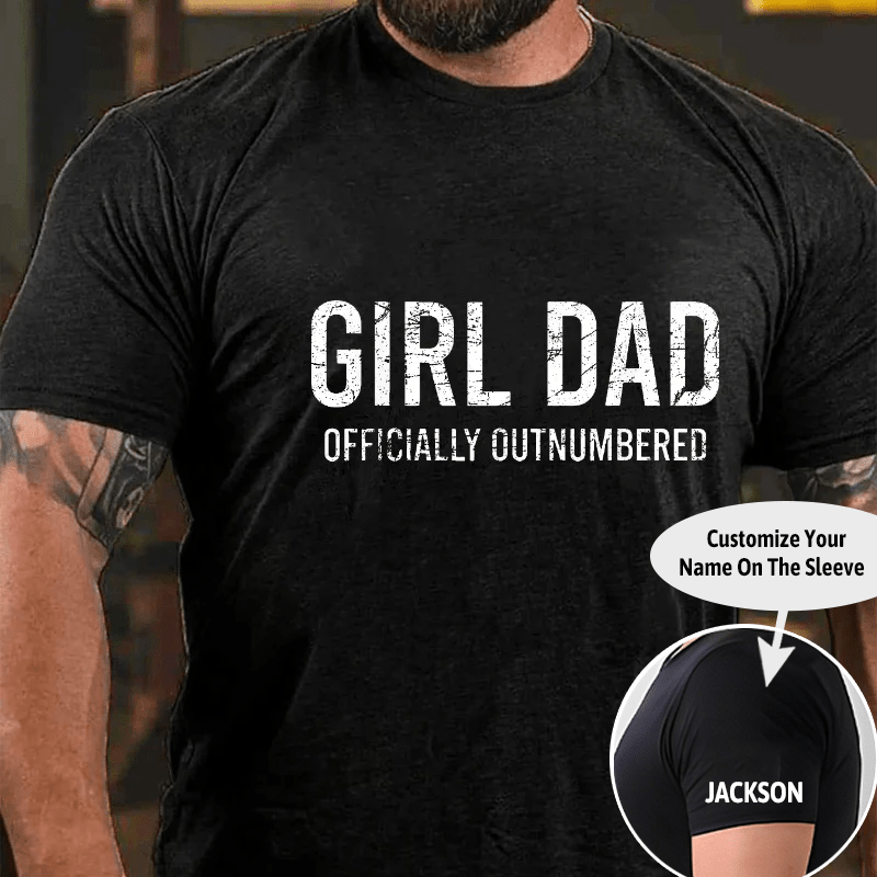 Girl Dad Officially Outnumbered Funny Gift Cotton T-shirt (Free Customization)$22.99 USD -