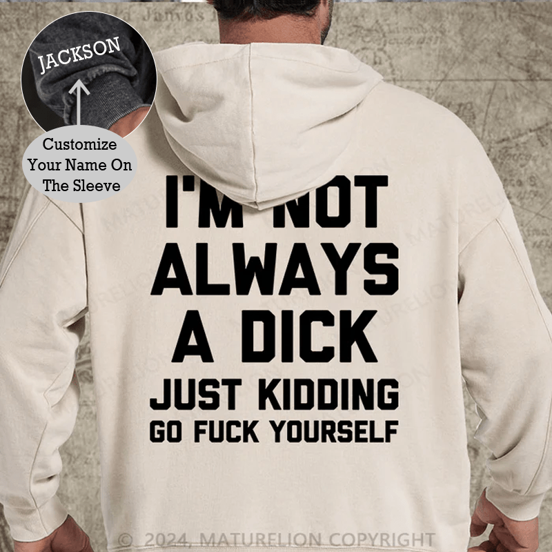 Maturelion I'm Not Always A Dick (Just Kidding, Go Fuck Yourself) DTG Printing Washed Custom Hoodie$39.98 USD -