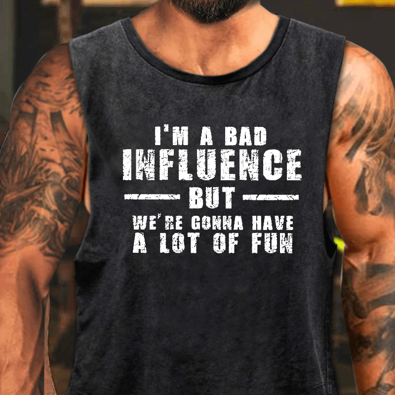 I'm A Bad Influence But We're Gonna Have A Lot Of Fun Washed Tank Top$22.99 USD $29.99 USD -