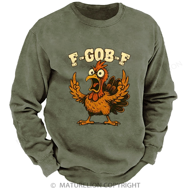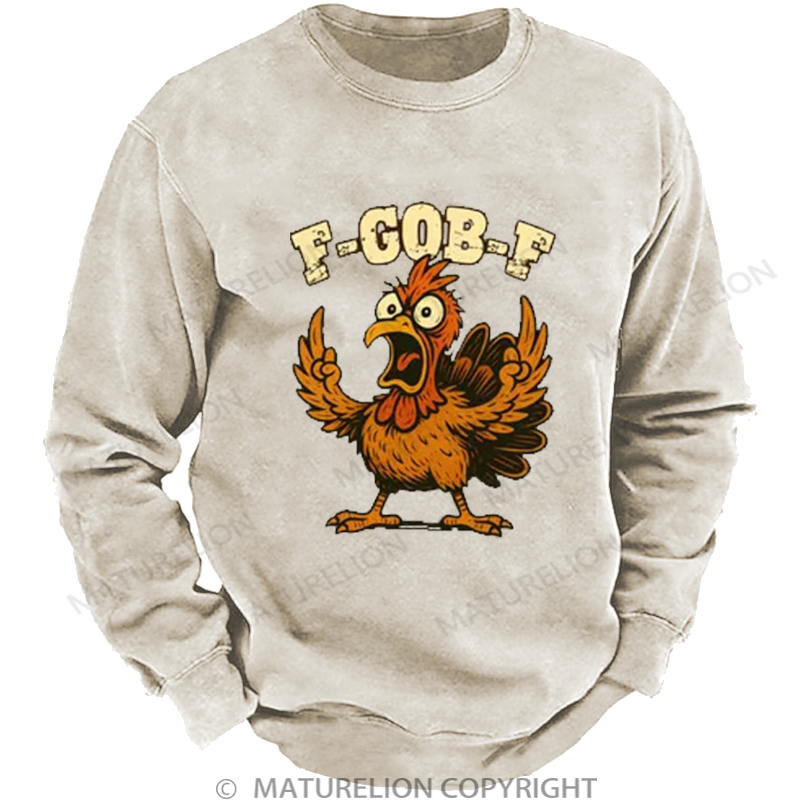 Maturelion Men's Sweatshirt F-Gob-F Funny Turkey Washed Sweatshirt