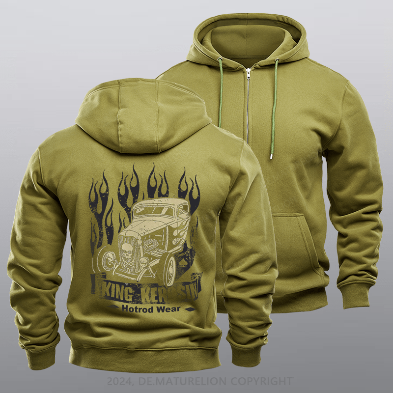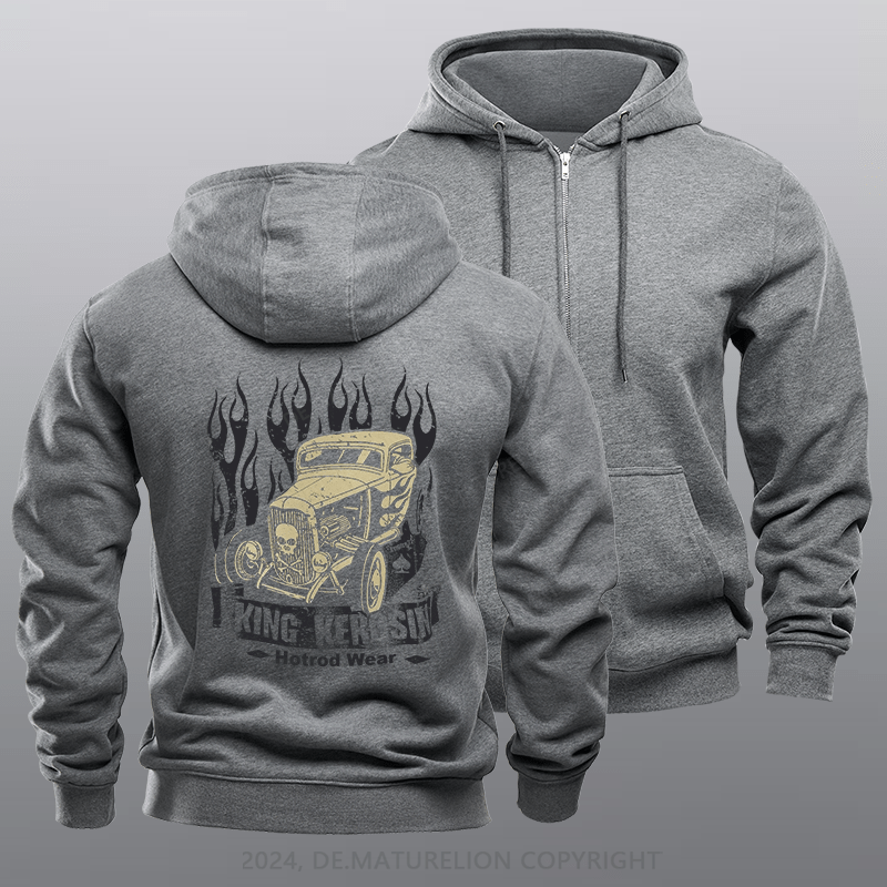 Maturelion Men's Hoodie Flamingo Hot Rod Zipper Hoodie