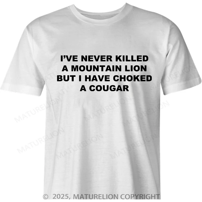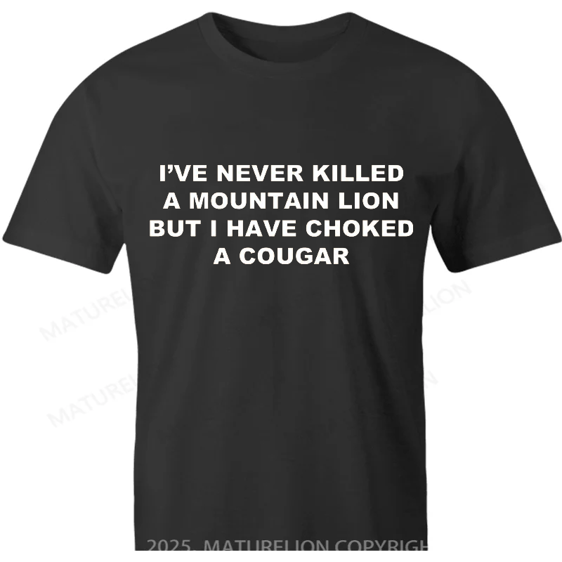 Maturelion British T-shirt I've never killed a mountain lion but i have choked a cougar Cotton T-shirt$22.99 USD -