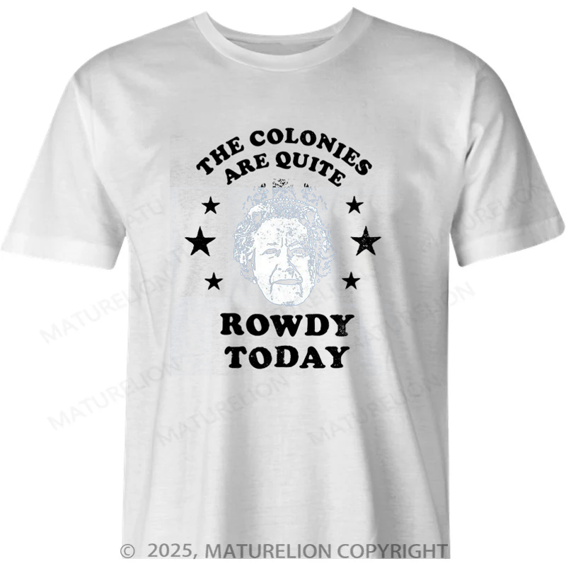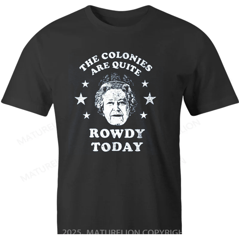 Maturelion British T-shirt The Colonies Are Quite Rowdy Today Unisex The Queen Cotton T-shirt$22.99 USD -