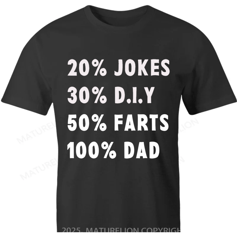 Maturelion British T-shirt 20% Jokes, 30% D.I.Y., 50% Farts, 100% Dad. Cotton T-shirt$22.99 USD -