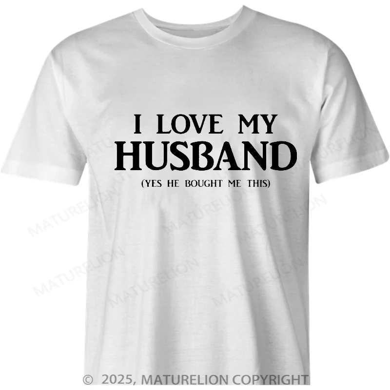 Maturelion British T-shirt I Love My Husband Yes he bought me this Cotton T-shirt$22.99 USD -