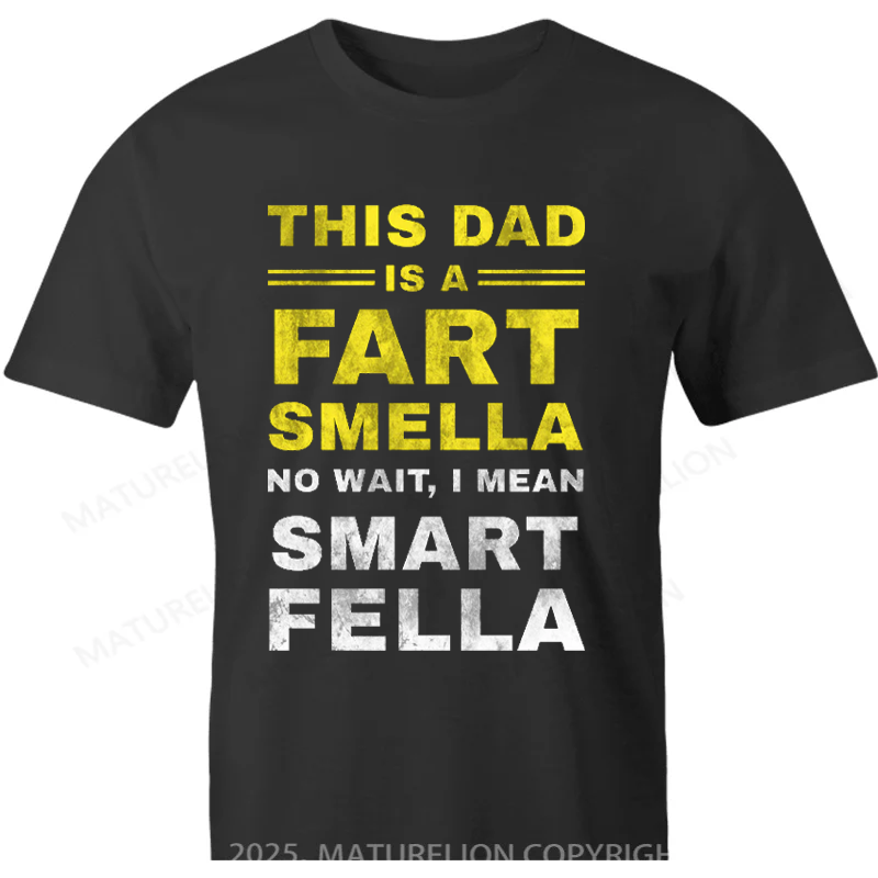 Maturelion British T-shirt This Dad Is A Fart Smella No Wait I Mean Smart Fella Cotton T-shirt$22.99 USD -