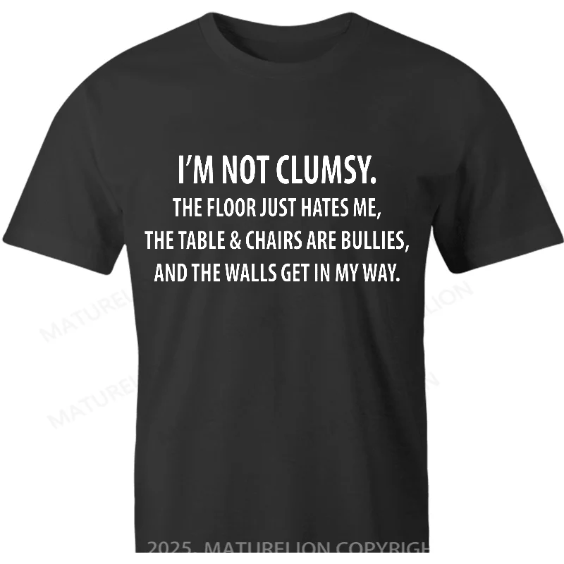 Maturelion British T-shirt I'm Not Clumsy The Floor Just hates Me Cotton T-shirt$22.99 USD -