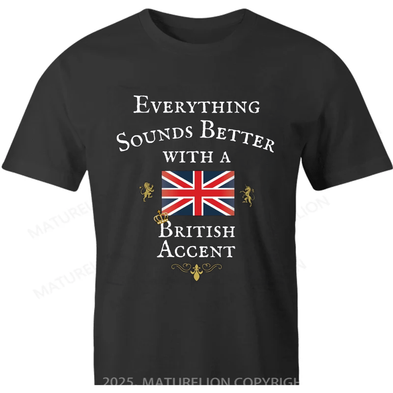 Maturelion British T-shirt Everything Sounds Better with a British Accent T-shirt$22.99 USD -