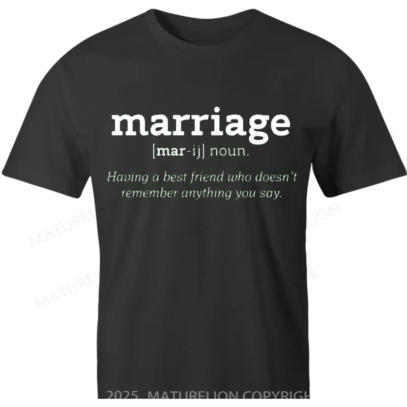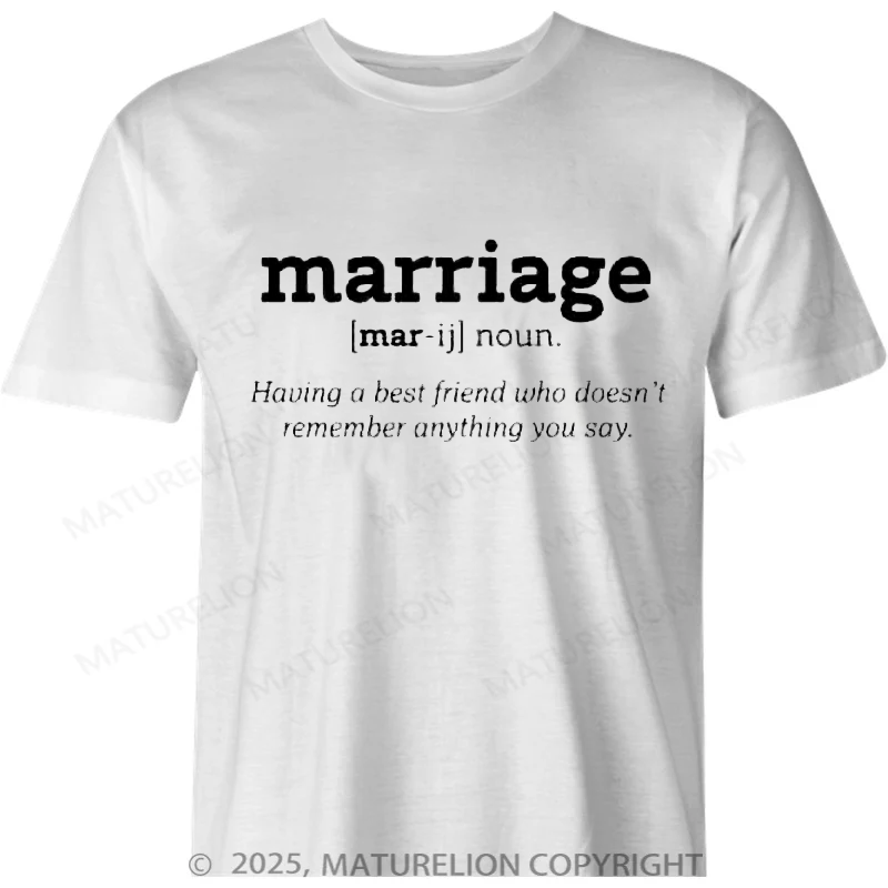 Maturelion British T-shirt Marriage Definition - Having a best friend who doesn't remember anything you said Cotton T-shirt$22.99 USD -