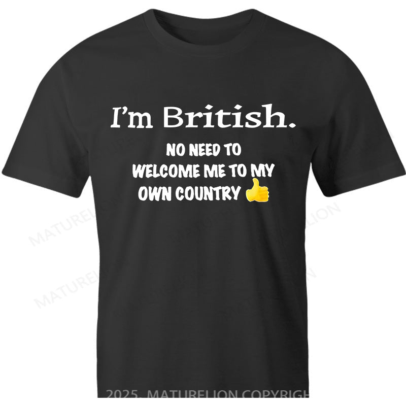 Maturelion British T-shirt I'm British No Need To Welcome Me To My Own Country Cotton T-shirt$22.99 USD -