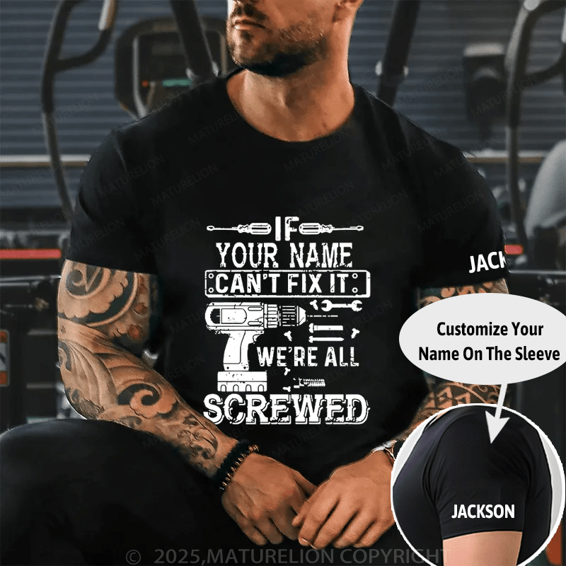 Maturelion Custom T-Shirt Your Name Can't Fix It We're All Screwed Cotton T-shirt (Free Customization)$22.99 USD -