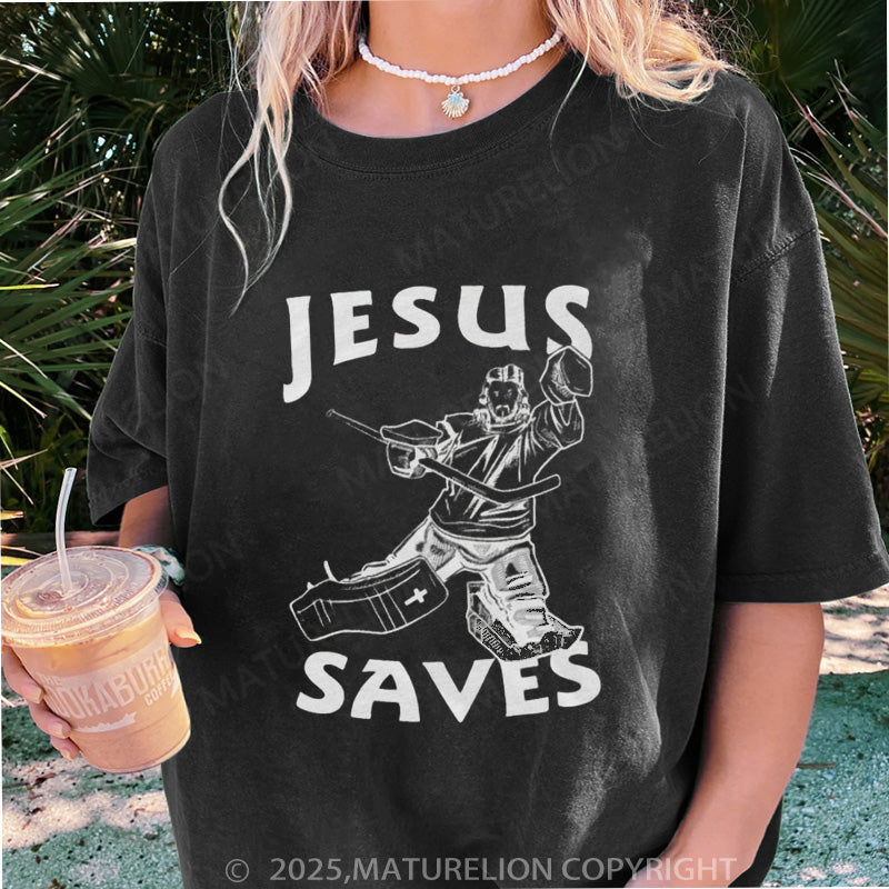Maturelion Women's T-shirt Jesus Saves Hockey DTG Washed T-shirt$26.99 USD $33.99 USD -