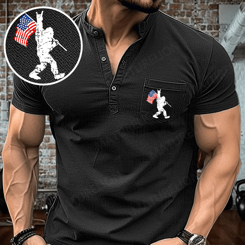 Maturelion Men's Henley Shirt Bigfoot Graphic Henley Shirt$29.99 USD -