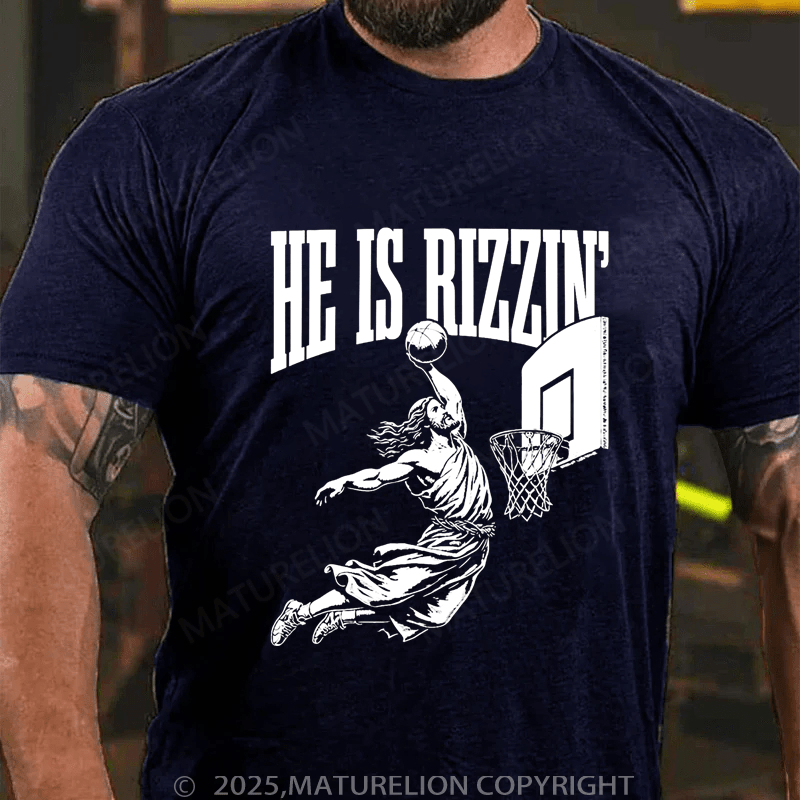 Maturelion Men's T-Shirt He Is Rizzin' Funny Jesus Playing Basketball Cotton T-Shirt$22.99 USD