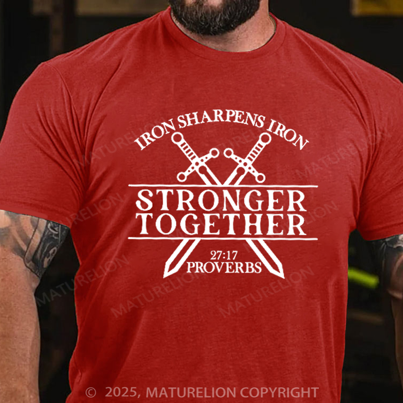 Maturelion Men's T-shirt Iron Sharpens Iron Stronger Than Together Proverbs 27 17 Cotton T-shirt$22.99 USD -
