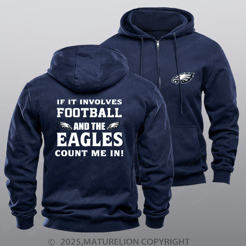 Maturelion Nfl Philadelphia Eagles If It Involves Football And The Philadelphia Eagles Count Me In Fleece Zipper Hoodie$54.99 USD -