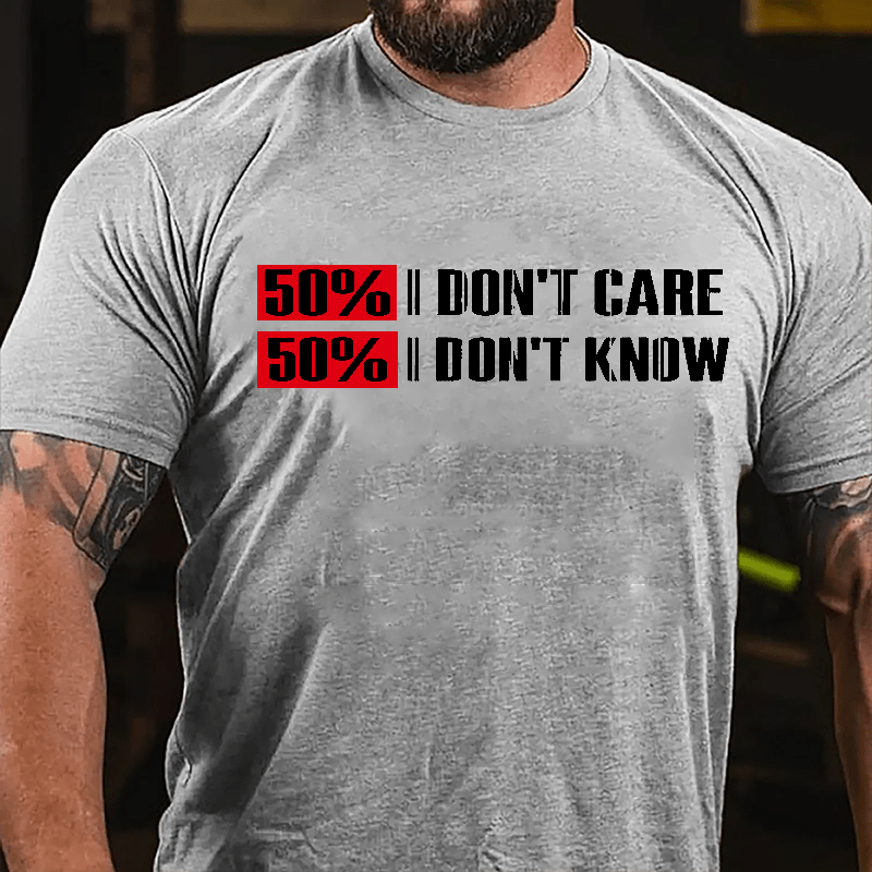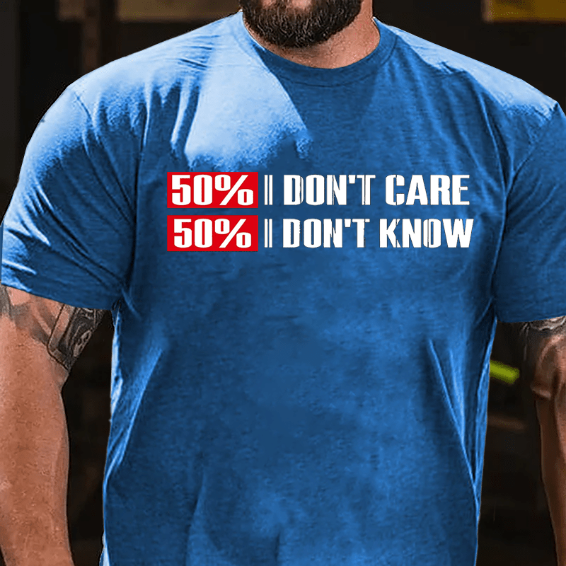 Make a statement with this T-shirt featuring a bold message that captures the mixed feelings of not caring and not knowing. Show off your playful side with this relaxed and comfortable tee that's perfect for casual days when you just want to feel carefree.