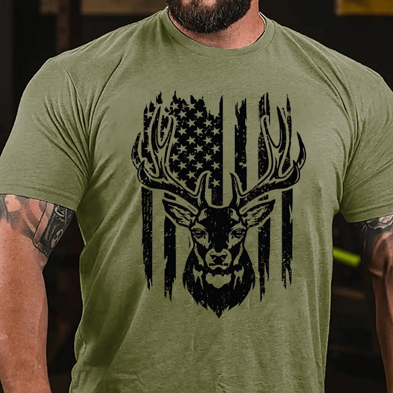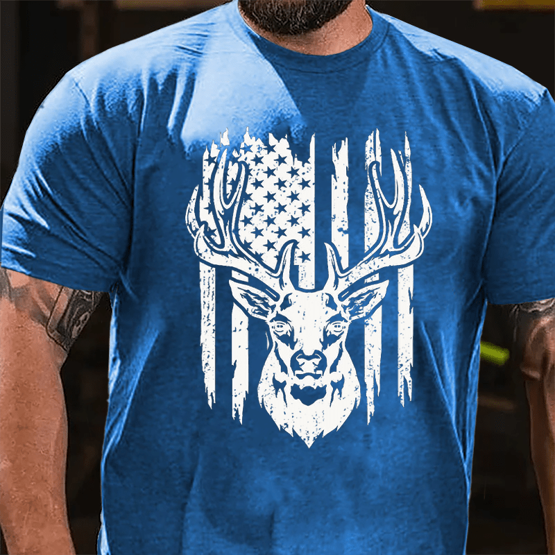 This T-shirt blends patriotism with a passion for outdoor hunting. If you love the great outdoors and enjoy chasing game, wearing this T-shirt will undoubtedly make you the most charming hunter!