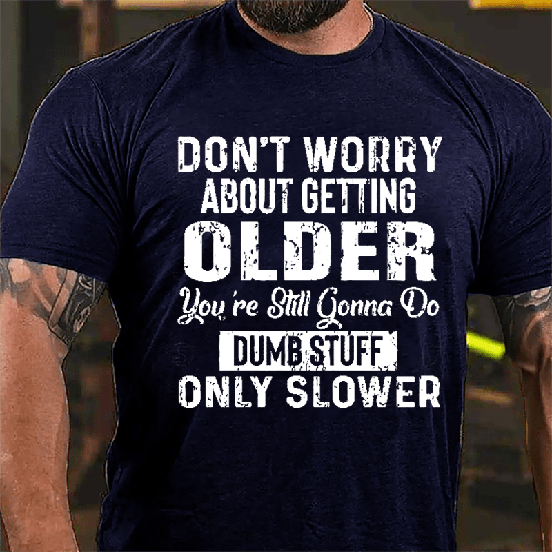Don't Worry About Getting Older You're Still Gonna Do Dumb Stuff Only Slower Men's Funny Cotton T-shirt