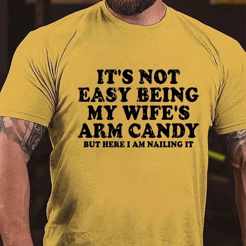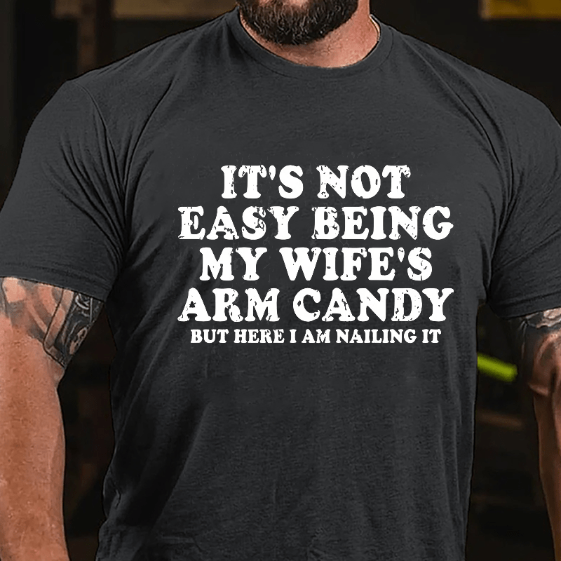 Prepare to shine in the t-shirt that proudly displays the challenges and triumphs of being the dependable companion of a wife, making a statement without uttering a single word.