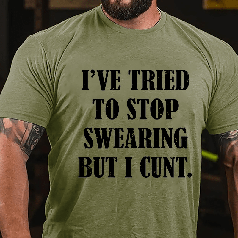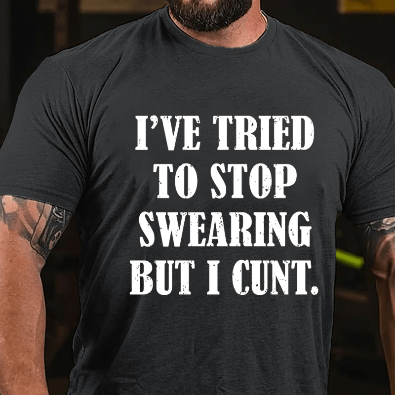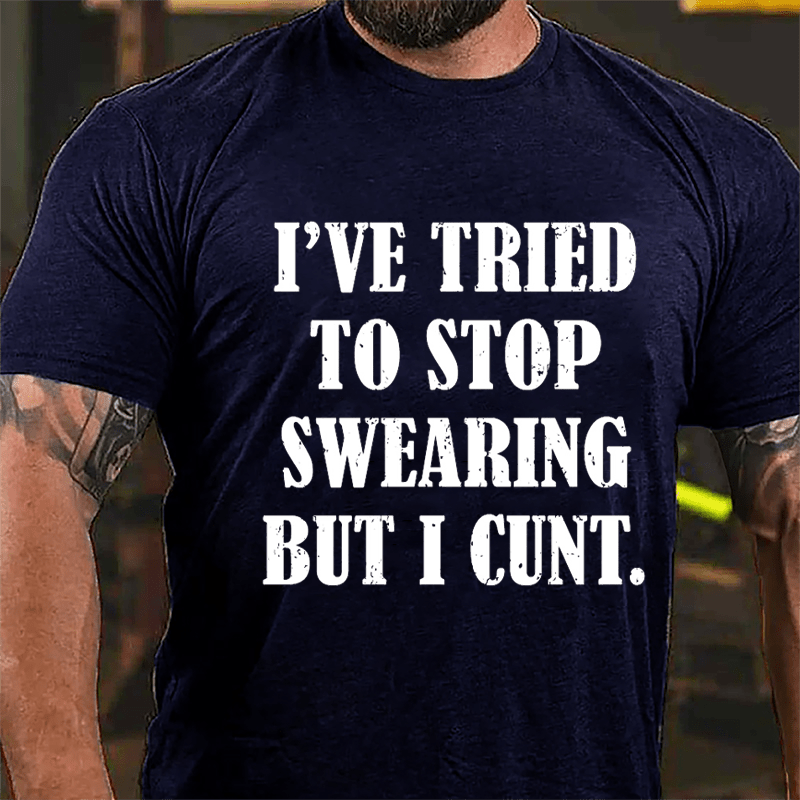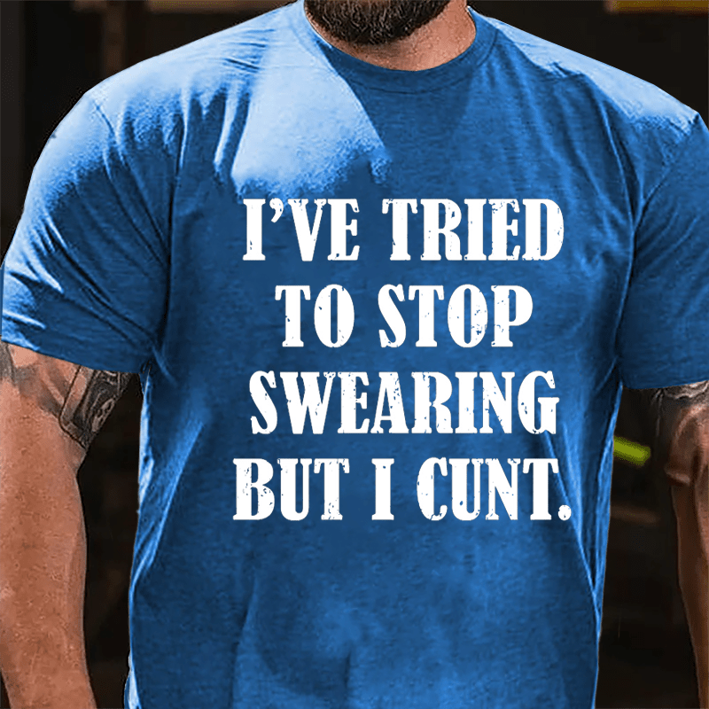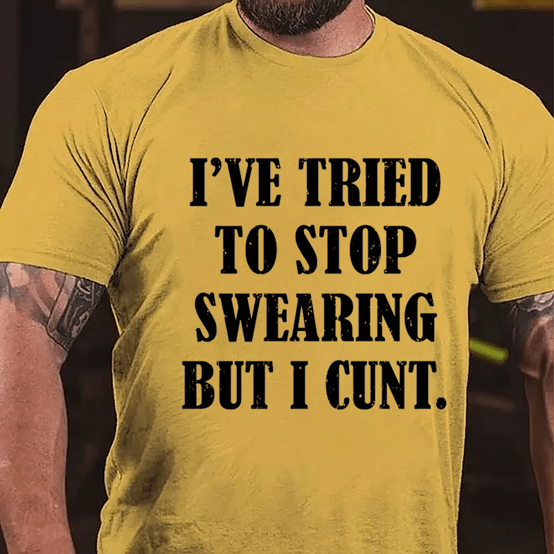 With offensive adult humor and sarcastic undertones, this design humorously acknowledges the struggle to curb swearing habits with a bold and irreverent twist.Add a personal touch to your style with our customizable men's T-shirts. Whether it's your name, initials, or a special date, make a statement by having it embroidered on the sleeve. Stand out in a crowd with a tee that's truly yours!