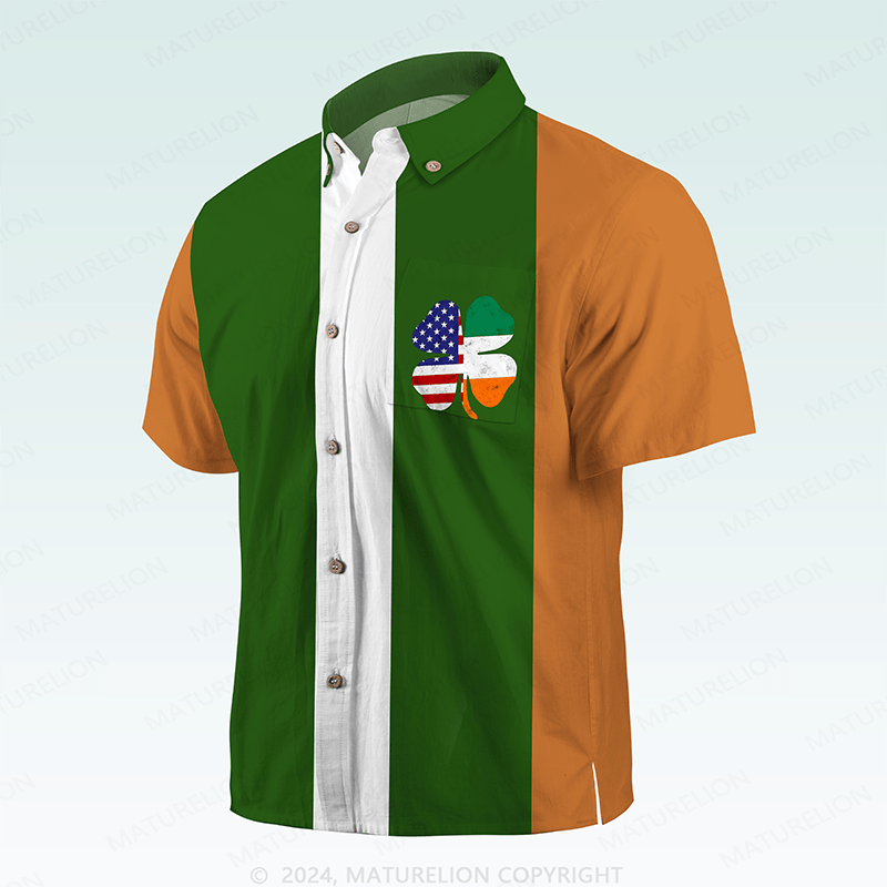 Matuelion St. Patrick's Button Pocket ShirtRetro Shamrock Breeze Hawaiian Shirt