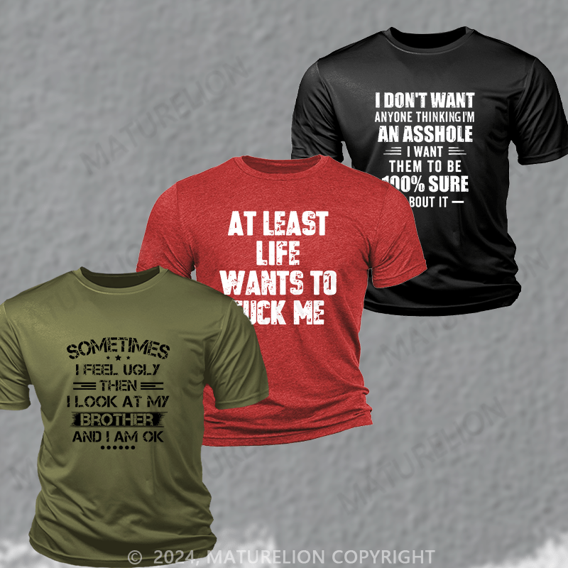 Maturelion 3-Pack Moisture-Wicking Breathable Text T-Shirt